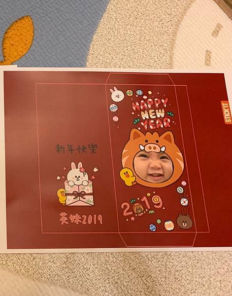 這次也很偷懶的用Line Camera 裡面的免費貼圖來製作,多了一個孩子版面變得比較擁擠,簡單也很好。